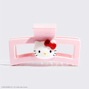 - A playfully pink clip featuring Hello Kitty and her iconic red bow. perfect for adding her signature sweetness to your hairstyle